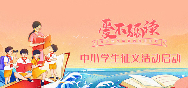 10月19日,“愛(ài)不孤讀——青少年文學(xué)素養(yǎng)提升計(jì)劃”主題征文第三期活動(dòng)啟動(dòng)。本次征文主題為“我看未來(lái)”,面向小學(xué)三年級(jí)到初中三年級(jí)的在讀學(xué)生征集作品?;顒?dòng)投稿日期為2020年10月1日至11月30日(以郵件發(fā)出日期為準(zhǔn))。優(yōu)秀稿件將在中國(guó)作家網(wǎng)“愛(ài)不孤讀”征文專(zhuān)欄中展示,在此基礎(chǔ)上,再?gòu)闹袃?yōu)中選優(yōu),推薦部分優(yōu)秀作品在《文藝報(bào)》和《少年文藝》雜志相關(guān)專(zhuān)欄發(fā)表。<詳細(xì)>