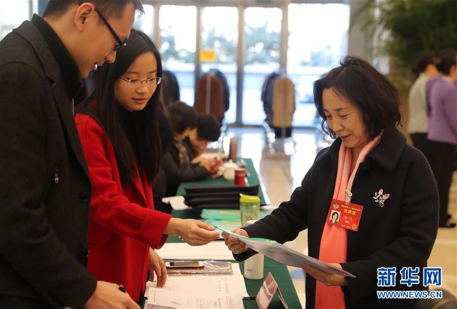 3月1日,全國政協(xié)委員姚一萍(右)抵達(dá)駐地北京會議中心。 當(dāng)日,參加全國政協(xié)十二屆五次會議的委員陸續(xù)抵達(dá)駐地報到。 新華社記者邢廣利攝