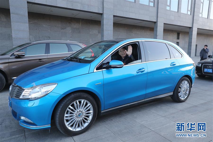 3月1日,全國政協(xié)委員黃力在駐地北京會議中心報到后,駕駛純電動汽車離開。 當(dāng)日,參加全國政協(xié)十二屆五次會議的委員陸續(xù)抵達(dá)駐地報到。新華社記者邢廣利攝