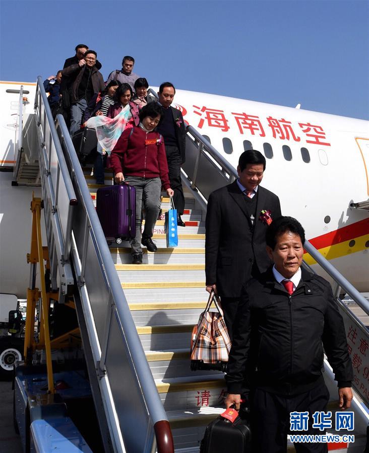 3月2日,出席十二屆全國人大五次會議的海南代表團(tuán)乘坐飛機(jī)抵達(dá)北京。新華社記者趙穎全攝