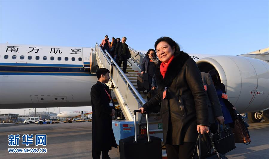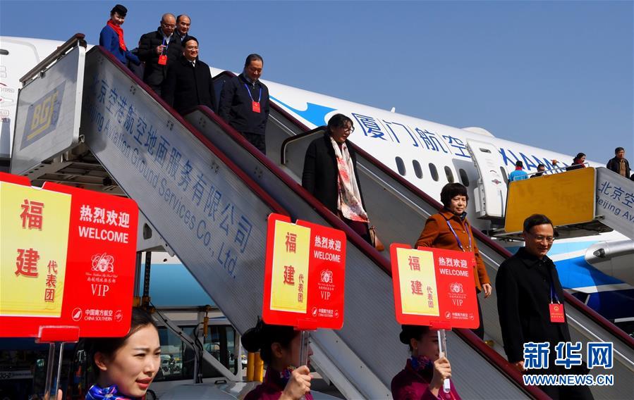 3月2日,出席十二屆全國人大五次會議的福建代表團(tuán)乘坐飛機(jī)抵達(dá)北京。新華社記者趙穎全攝