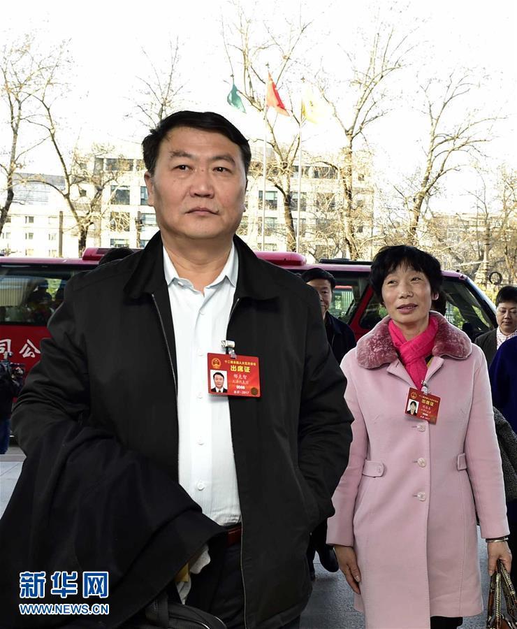 3月2日,出席十二屆全國人大五次會議的天津代表團(tuán)抵達(dá)北京。這是全國人大代表邢克智(前左)和薛海英(前右)等抵達(dá)駐地西直門賓館。新華社記者 岳月偉 攝