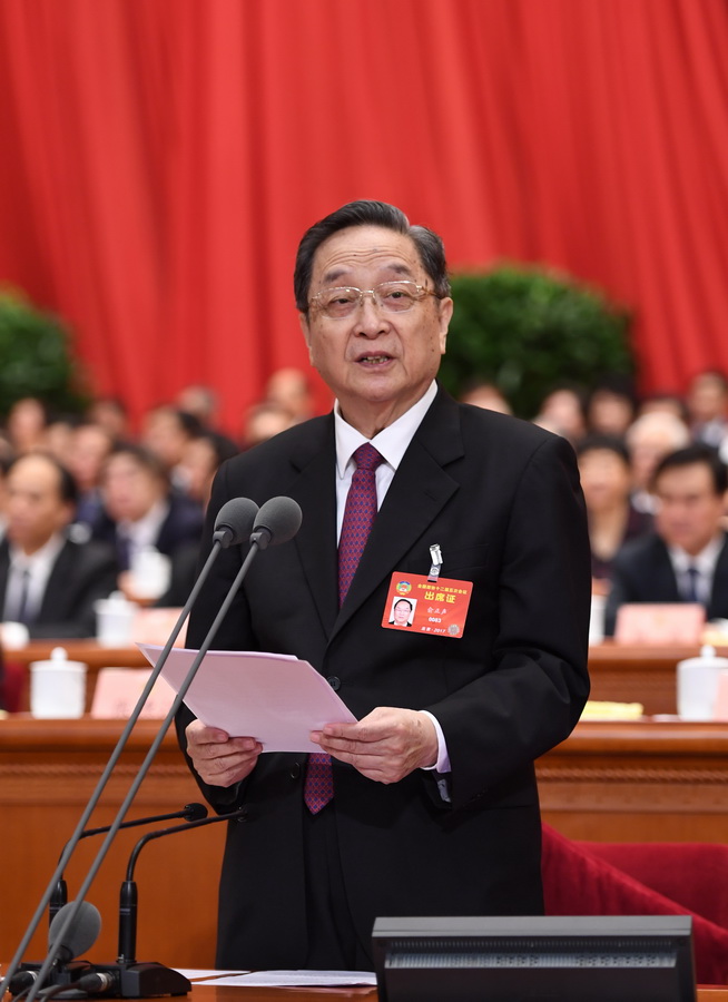 全國(guó)政協(xié)主席俞正聲宣布:中國(guó)人民政治協(xié)商會(huì)議第十二屆全國(guó)委員會(huì)第五次會(huì)議,應(yīng)出席委員2203人,今天實(shí)到2101人,符合規(guī)定人數(shù)。