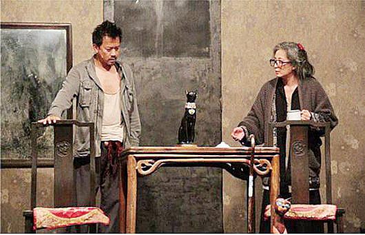 如果說上述作品是獻(xiàn)給為官者的箴言,《家客》《雨夜》《兩只螞蟻在路上》等作品就是唱給普通人的歌。喻榮軍編劇、周小倩導(dǎo)演的《家客》是上海話劇藝術(shù)中心新作,這部著眼于個(gè)人家庭生活的三個(gè)人的小戲,以風(fēng)趣的形式探討了退休生活、知識分子責(zé)任、人生的可能性等諸多大話題,假想式結(jié)構(gòu)和開放式結(jié)局展現(xiàn)了“佳構(gòu)劇”的精致與精巧。沈陽話劇團(tuán)新作《雨夜》由李寶群編劇、吳曉江導(dǎo)演,關(guān)注普通人的成長和際遇,人物定位表達(dá)了編創(chuàng)者的志趣。李寶群編劇、王根導(dǎo)演的《兩只螞蟻在路上》也以底層視角反映現(xiàn)實(shí)冷暖。此外,一些表現(xiàn)歷史人物的作品,如北京人藝重排的《關(guān)漢卿》、上海話劇藝術(shù)中心重排的《商鞅》、河北話劇團(tuán)的《詹天佑》、北京東城區(qū)政府支持的《留取丹心》等,也在2017年話劇舞臺上留下了印跡。還有一些致敬經(jīng)典的劇目,如李六乙導(dǎo)演的《李爾王》和四川話版《茶館》、方旭改編和導(dǎo)演的《二馬》等,借助經(jīng)典的高度顯示出了獨(dú)特魅力。