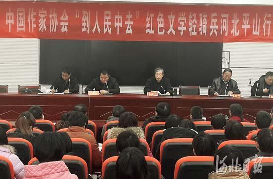 為學(xué)習(xí)貫徹習(xí)近平總書(shū)記給內(nèi)蒙古自治區(qū)蘇尼特右旗烏蘭牧騎隊(duì)員們回信的重要指示精神,號(hào)召?gòu)V大文藝工作者努力做新時(shí)代“紅色文藝輕騎兵”,今天,由中國(guó)作協(xié)主辦,河北省作協(xié)協(xié)辦的“到人民中去”紅色文學(xué)輕騎兵河北行活動(dòng)在平山縣舉辦。