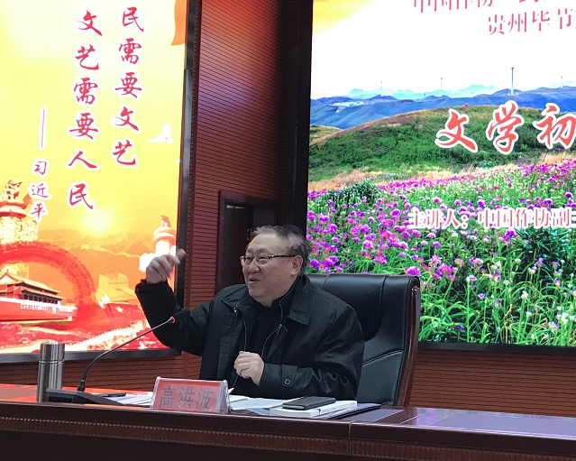 1月27日至28日,中國作協(xié)副主席高洪波一行3人組成的中國作協(xié)“到人民中去”紅色文學(xué)輕騎兵小分隊走進畢節(jié),開展文學(xué)公益講座、創(chuàng)作座談會和相關(guān)主題實踐活動。活動由貴州省作協(xié)黨組書記、副主席張緒晃主持。畢節(jié)市文聯(lián)主席劉群峰、畢節(jié)市作協(xié)主席楊春明等出席有關(guān)活動,畢節(jié)市、赫章縣、畢節(jié)國稅文聯(lián)、作協(xié)及周邊區(qū)縣文學(xué)愛好者百余人參加活動。