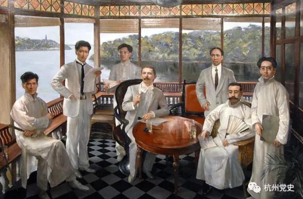我們無從得知這次會(huì)議當(dāng)時(shí)具體的情形,但是從后來我們能看到的油畫上,這七人神態(tài)各異:馬林和李大釗居中而坐,馬林舉手像正在說什么;陳獨(dú)秀傲然而立,張國燾則手中拿著長長的稿子,表情頗為不平;邊上張?zhí)讑A著一個(gè)當(dāng)時(shí)最流行的碩大的文件夾,一臉期盼的看著遠(yuǎn)方。