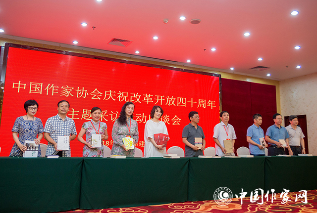 活動(dòng)期間,采訪團(tuán)還舉辦了座談會(huì)。四川省作協(xié)主席、采訪團(tuán)副團(tuán)長(zhǎng)阿來(lái)從張承志的《石頭的勝利》談起,回顧了海上絲綢之路的歷史,談及泉州的文化基因和自己對(duì)文化發(fā)展的思考。他談到,新時(shí)代讓中國(guó)文學(xué)又迎來(lái)了開(kāi)放的年代,中國(guó)文學(xué)還有很長(zhǎng)的路要走。作家們需要有新的視角、新的感受、新的技巧與審美,期待對(duì)時(shí)代負(fù)責(zé)任的寫(xiě)作者可以創(chuàng)作出更多有分量的現(xiàn)實(shí)題材作品。河北省灤南縣作協(xié)主席韓進(jìn)勇表示,作為一名基層作家,非常感謝有這樣的采訪機(jī)會(huì),可以使自己開(kāi)闊視野,深切感受到改革開(kāi)放40年來(lái)取得的豐碩成果。中國(guó)作協(xié)創(chuàng)聯(lián)部副主任、采訪團(tuán)副團(tuán)長(zhǎng)包宏烈表示,這次采訪活動(dòng)既是豐富的社會(huì)實(shí)踐,也是深入的國(guó)情調(diào)研。作為在場(chǎng)者和見(jiàn)證者,大家學(xué)到了真經(jīng),得到了真?zhèn)鳎@取了寶貴而豐沛的創(chuàng)作資源,一定能在日后的寫(xiě)作之路上創(chuàng)作出更多反映時(shí)代精神、展現(xiàn)人民奮斗、振奮民族精神的優(yōu)秀作品。福建省文聯(lián)副主席陳毅達(dá)表示,這次采訪對(duì)于福建省作家來(lái)說(shuō)是一次難得的學(xué)習(xí)機(jī)會(huì)。福建作為改革開(kāi)放的前沿地區(qū),蘊(yùn)含豐富的創(chuàng)作資源,文學(xué)的創(chuàng)作必須緊貼時(shí)代、社會(huì)、現(xiàn)實(shí)。采訪團(tuán)的其他作家也在發(fā)言中表示,此次采訪進(jìn)一步增強(qiáng)了自己對(duì)改革開(kāi)放成就的感知與認(rèn)識(shí),下一步,將更加自覺(jué)地肩負(fù)起歷史責(zé)任和時(shí)代使命,堅(jiān)持以人民為中心的創(chuàng)作導(dǎo)向,加強(qiáng)現(xiàn)實(shí)題材創(chuàng)作,不斷推出有思想、有溫度、有筋骨的佳作。福建省文聯(lián)副主席、省作協(xié)主席楊少衡主持座談會(huì)。座談會(huì)上還舉辦了贈(zèng)書(shū)儀式,采訪團(tuán)作家們向廈門(mén)市文聯(lián)、廈門(mén)市作協(xié)捐贈(zèng)了自己的作品。