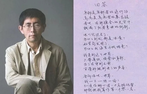 1979年3月,《詩刊》發(fā)表了詩人北島的作品《回答》,這首北島早期的詩歌,也是北島最著名的詩作。它反映了整整一代青年覺醒的心聲,標(biāo)志著朦朧詩由地下正式走上詩壇,并確立了它在中國當(dāng)代詩歌轉(zhuǎn)折期的地位。