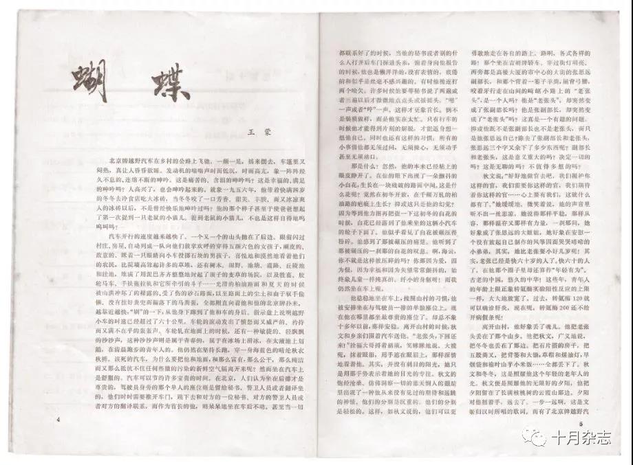 從創(chuàng)刊至今,《十月》對(duì)中篇小說(shuō)發(fā)展做出的貢獻(xiàn)尤其值得提及。刊物創(chuàng)辦人之一的資深老編輯、散文家張守仁說(shuō):“當(dāng)時(shí)那些月刊一期就十幾萬(wàn)字,所以發(fā)一個(gè)中篇就了不得了,而我們一期就發(fā)三四個(gè)。從‘五四’以來(lái),還從來(lái)沒(méi)有刊物這樣做。 可以說(shuō),《十月》引發(fā)了中篇小說(shuō)的第一個(gè)高潮。同時(shí),我們抓緊時(shí)機(jī),召開了一個(gè)中篇小說(shuō)座談會(huì),把很多作家都請(qǐng)來(lái)參加,推動(dòng)中篇小說(shuō)這個(gè)體裁的發(fā)展?!笔聦?shí)的確如此??梢哉f(shuō),在中篇小說(shuō)領(lǐng)域,能夠與《十月》雜志抗衡的刊物幾乎沒(méi)有?!妒隆返闹衅≌f(shuō)獲得的全國(guó)性獎(jiǎng)項(xiàng)(“魯獎(jiǎng)”和“全國(guó)優(yōu)秀中篇小說(shuō)獎(jiǎng)”)有十八部之多。更重要的不是數(shù)量,而是這些作品的巨大影響力。比如王蒙的《蝴蝶》,鄧友梅的《追趕隊(duì)伍的女兵們》,劉紹棠的《蒲柳人家》,宗璞的《三生石》,張承志的《黑駿馬》《北方的河》,鐵凝的《沒(méi)有紐扣的紅襯衫》《永遠(yuǎn)有多遠(yuǎn)》,張賢亮的《綠化樹》,賈平凹的《臘月·正月》,張一弓的《張鐵匠的羅曼史》,葉廣芩的《夢(mèng)也何曾到謝橋》,方方的《斷琴口》等,都是三十多年來(lái)中篇小說(shuō)最重要的作品。