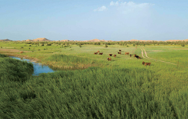 我多年來創(chuàng)作的長篇報告文學《毛烏素綠色傳奇》《人間神話》《綠色壯歌》,以及近年來發(fā)表于《人民日報》《光明日報》上的生態(tài)散文《精耕庫布其》《致意毛烏素沙漠的最后一座沙山》等,都是我對鄂爾多斯人治理荒漠化進程的忠實記錄和對荒漠化治理的生態(tài)反思。我的文學創(chuàng)作,正是隨著鄂爾多斯大地的巨大變化而不斷推進的,正是這種生根大地的非虛構寫作,讓我感受到土地的翻騰變化。40年的改革開放,讓我筆耕不輟,用手中的筆呵護著美麗的鄂爾多斯。正是這種扎根土地的寫作,讓我不飄不虛,無時不在汲取土地的營養(yǎng),于是會不知不覺地把自己融入鄂爾多斯大沙漠里。足踩在沙漠上,我想,我就是一粒沙子;身隱在鋪天蓋地的沙漠綠浪中,我想,我就是一株小草。熱愛沙漠,呵護沙漠,已經(jīng)成為了我生態(tài)寫作的一部分。在日常生活中,我會為鄂爾多斯沙漠間出現(xiàn)的汪汪碧水高興得手舞足蹈,驚呼片片濕地又回到了鄂爾多斯沙漠。我也會為不知何人偷偷開的小片荒憤怒得大喊大叫,像是有人觸疼了我的神經(jīng)。多年以來,不管什么樣的場合,只要抓住話筒,我便大談荒漠化治理,一動筆,幾下就拐到了草原和沙漠上來。而且,越老越固執(zhí),好在我還能從不斷變化的草原大漠里汲取營養(yǎng),以滋潤自己的頭腦和手中這支禿筆。
