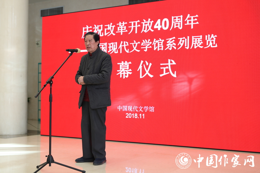 中國(guó)現(xiàn)代文學(xué)館原副館長(zhǎng)、編輯家周明和評(píng)論家孟繁華在開幕儀式上發(fā)言。他們回顧了改革開放40年來中國(guó)文學(xué)事業(yè)發(fā)展取得的輝煌成就,以及中國(guó)現(xiàn)代文學(xué)館成立以來與中國(guó)文學(xué)一路同行、不斷發(fā)展的歷程,對(duì)此次系列展覽的舉辦予以高度評(píng)價(jià)。