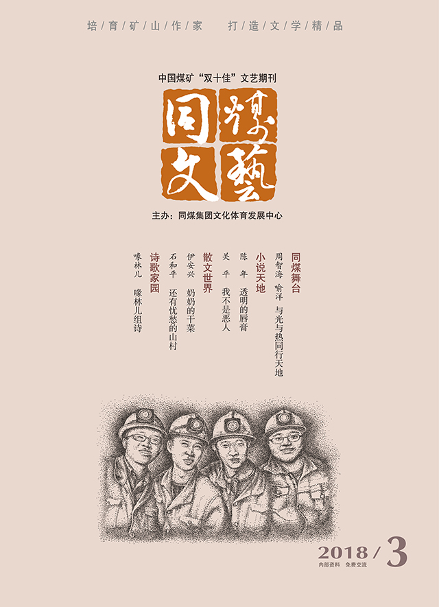 《同煤文藝》為雙月刊,以發(fā)表小說、詩歌、散文、報(bào)告文學(xué)、評(píng)論為主,兼發(fā)美術(shù)、書法、攝影、歌曲等作品,作品注重時(shí)代性、思想性、真實(shí)性和藝術(shù)性的有機(jī)結(jié)合。迄今創(chuàng)刊已60年,出刊200期,在五屆全煤“雙十佳”文藝期刊評(píng)比活動(dòng)中,均獲“雙十佳”稱號(hào)。