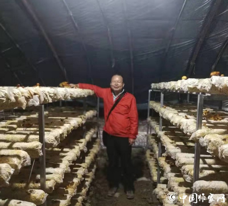 作者吳斌在溫室大棚查看種植的食用菌滑子菇