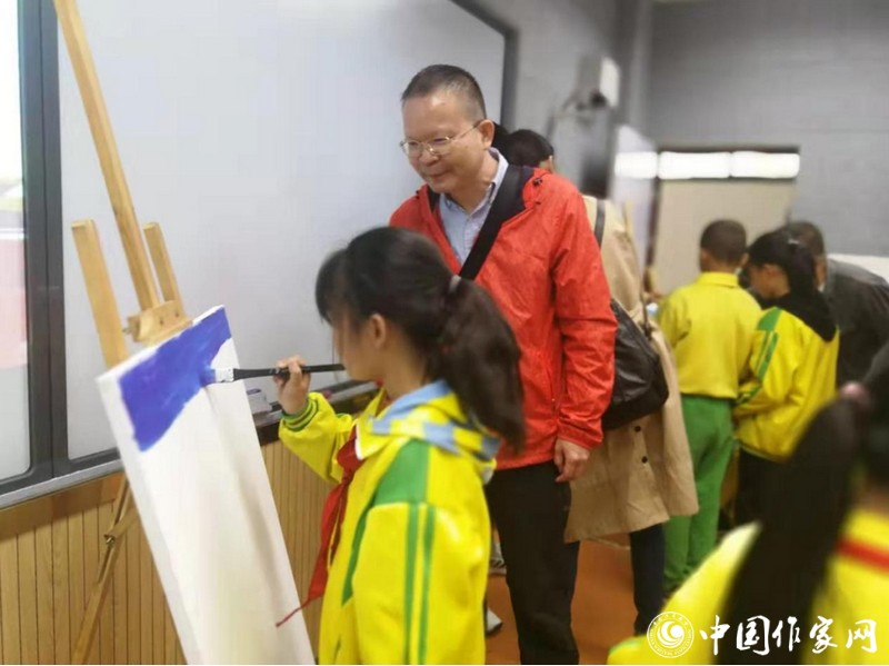 吳斌在東鄉(xiāng)縣幸福學校觀看小學生在廈大楊教授的指導下學繪油畫