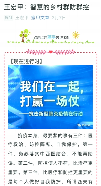 王宏甲發(fā)文章談疫情。
