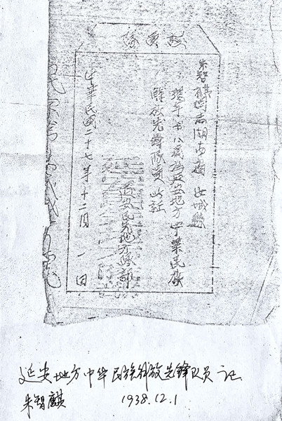 朱子奇(曾用名朱智麒)延安地方中華民族解放先鋒隊(duì)員證