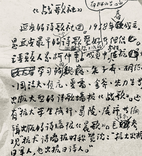 朱子奇手稿《戰(zhàn)歌社》