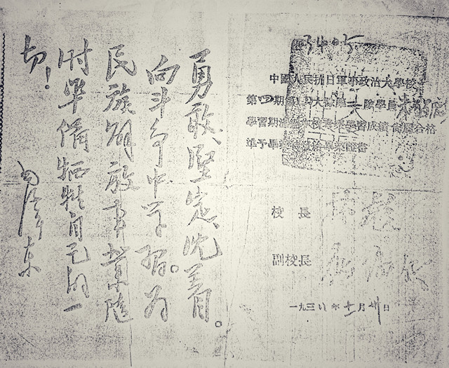 朱子奇抗大畢業(yè)證書,編號3405