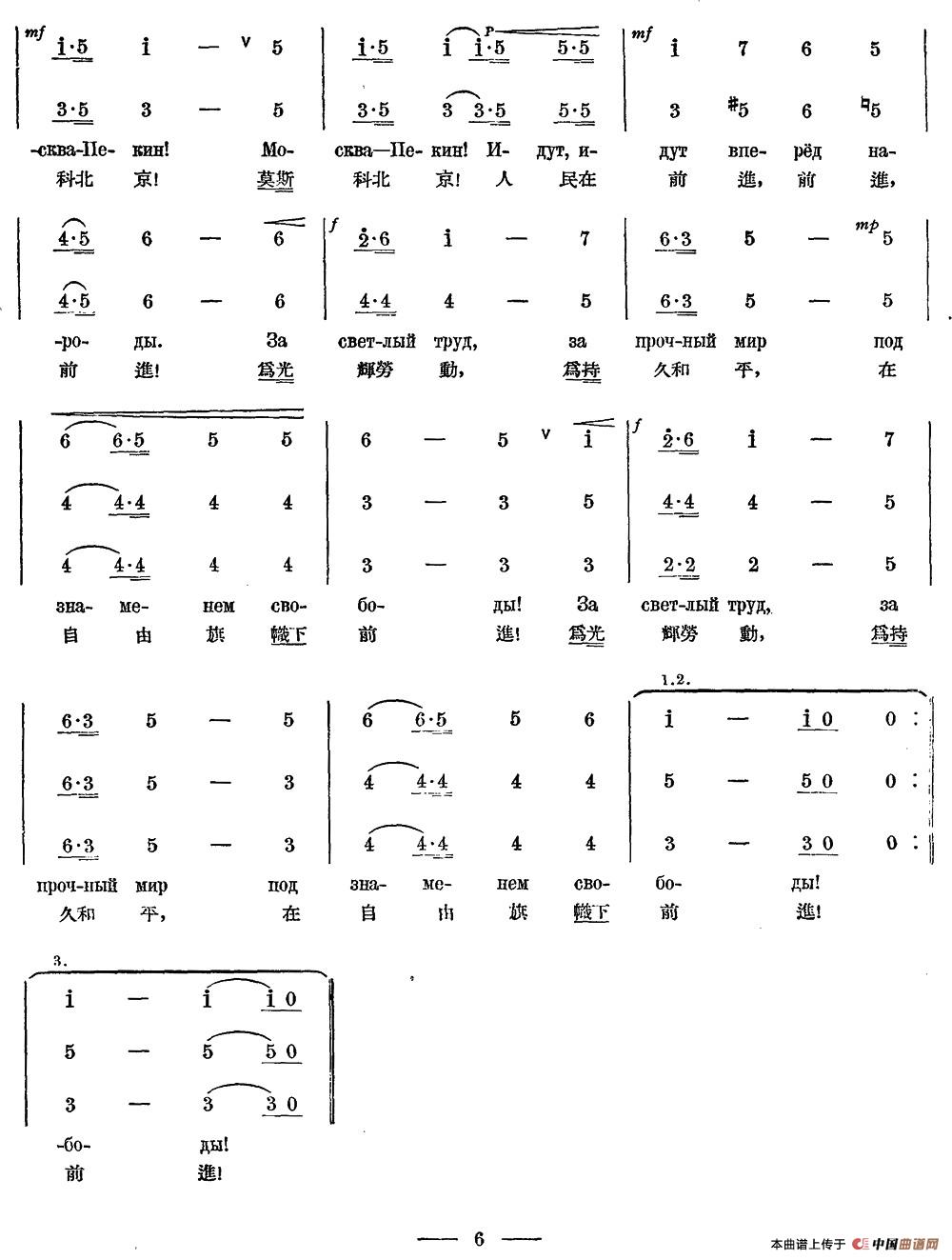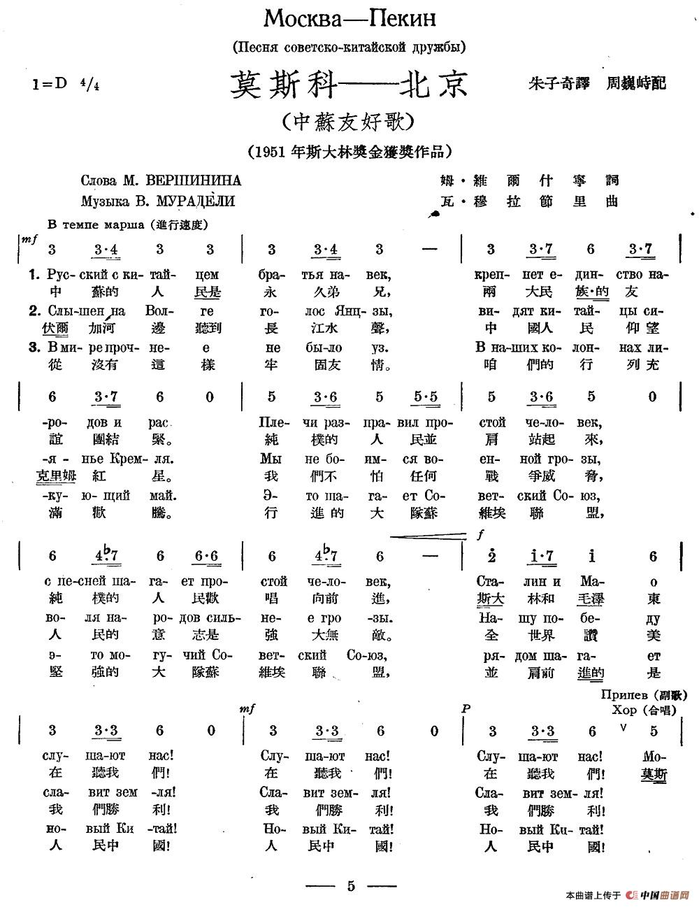 《莫斯科-北京》曲譜