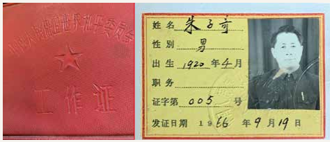 朱子奇在中華人民保衛(wèi)世界委員會工作時的工作證