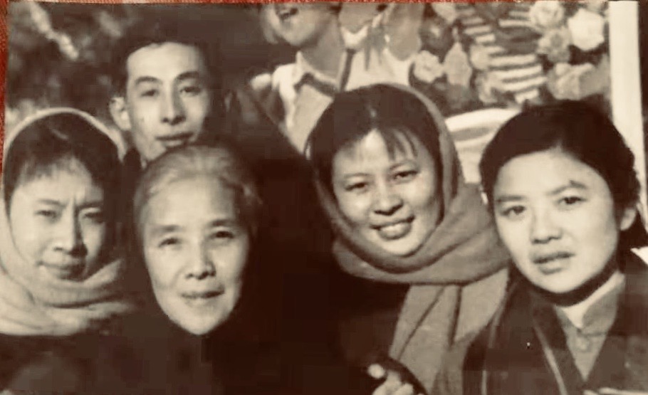 1977年春節(jié)朱子奇家人合影。左起:朱維平、陸璀、朱寧清、陸蘭沁,后排:朱寧生