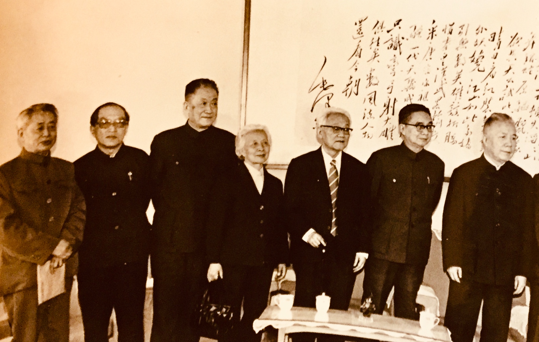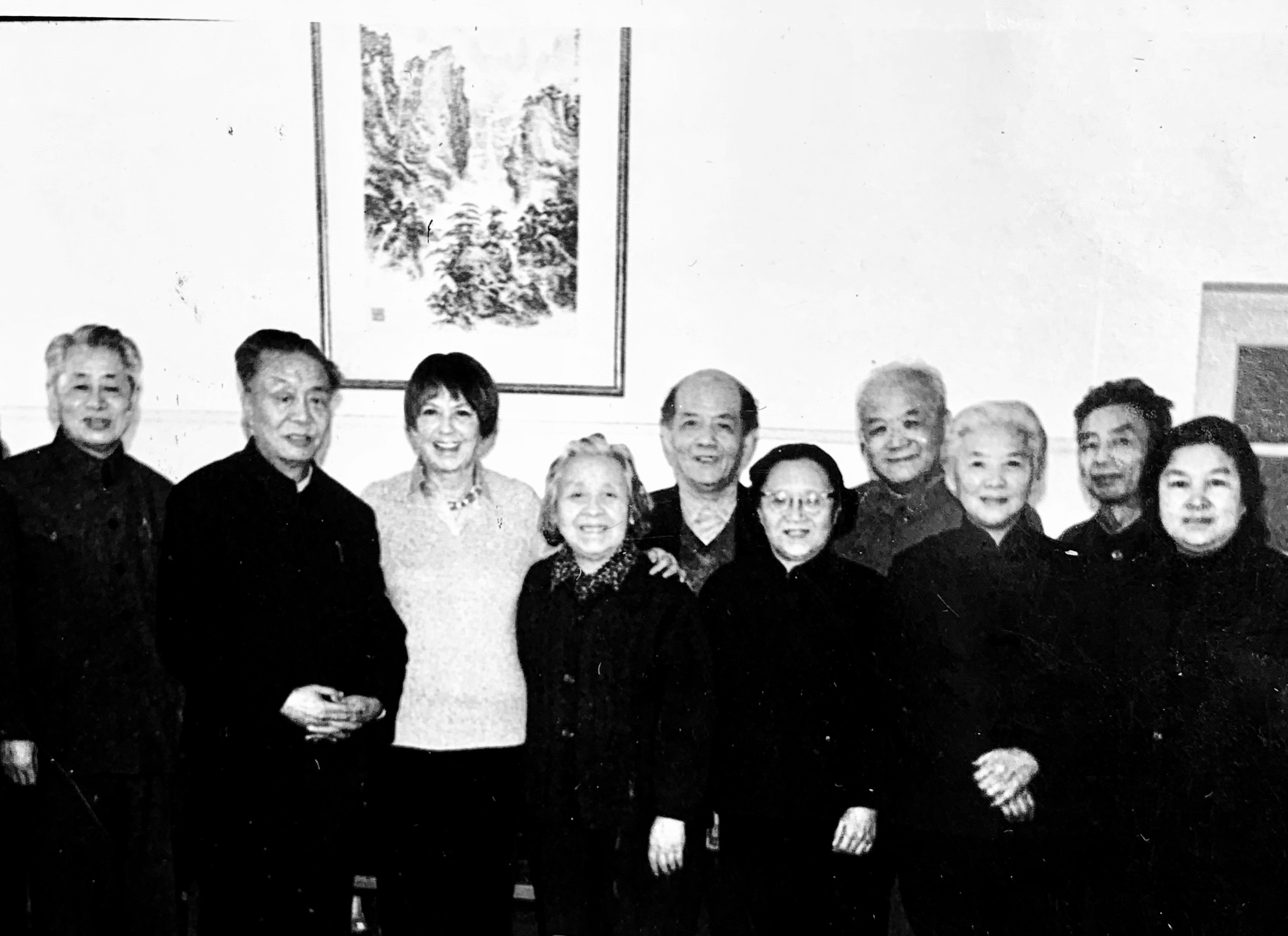 1982年2月19日,歡迎斯諾夫人路易斯。左一朱子奇、左二艾青、左三路易斯、左四丁玲、左六韋君宜、左七蕭乾、左八陸璀、右一高瑛。
