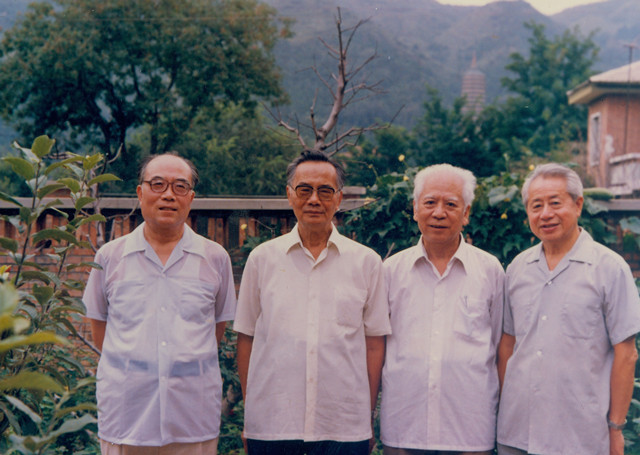 1987年9月2日朱子奇(右)姚雪垠(右二)林默涵(右三)到西山家中