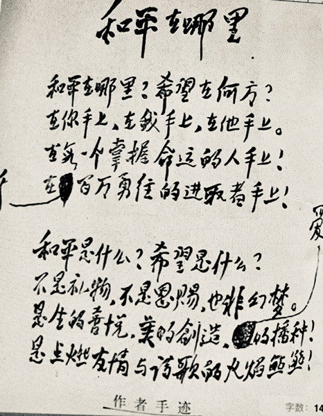 朱子奇手稿《和平在哪里》