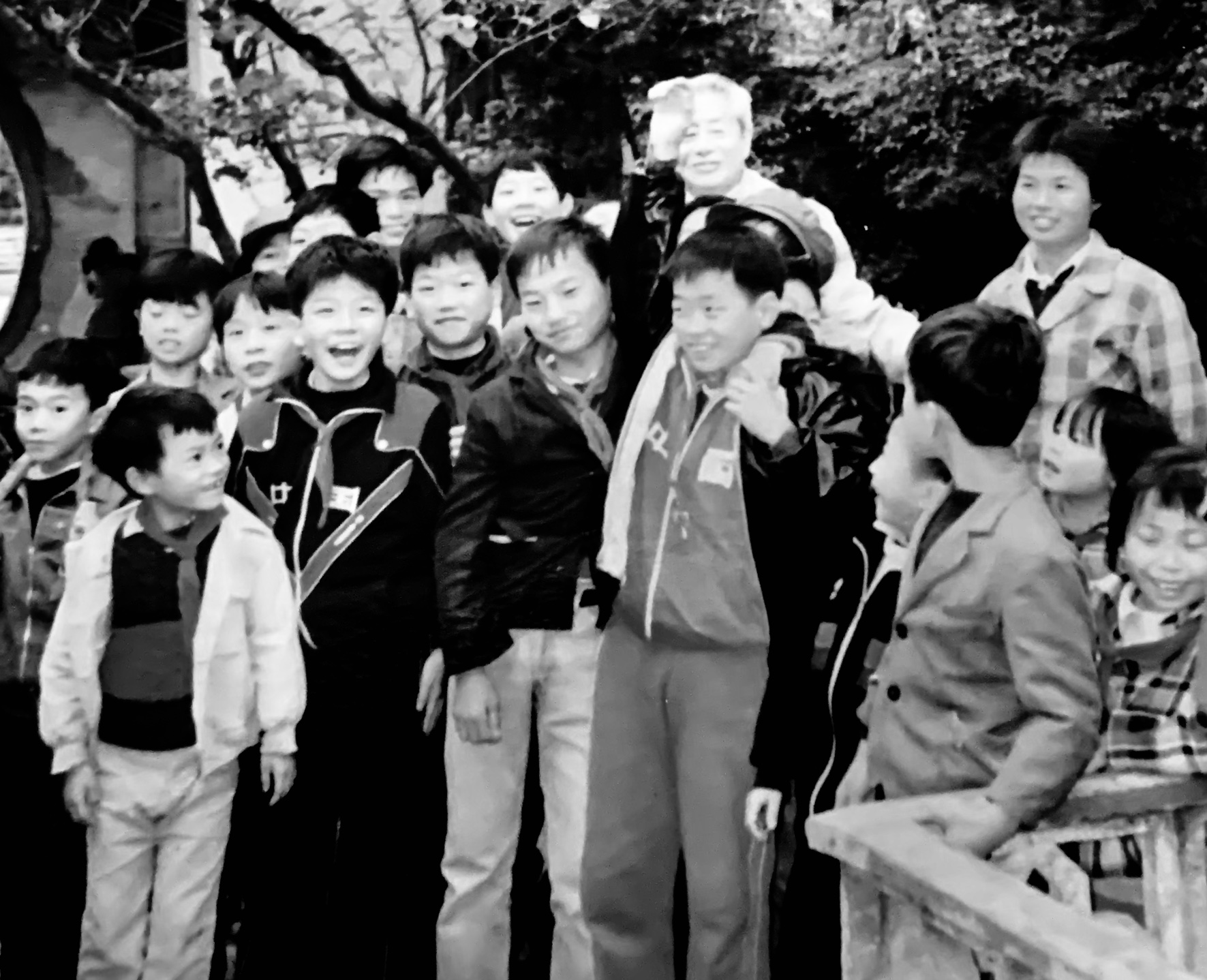 1989年,朱子奇回家鄉(xiāng)湖南汝城他的母校儲能小學(xué),和孩子們在一起。