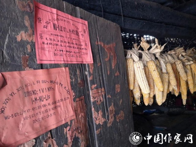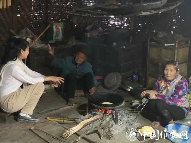 啟付林身旁的火塘并沒有燃燒,因此屋內(nèi)光線很暗。大白天也需要開燈。