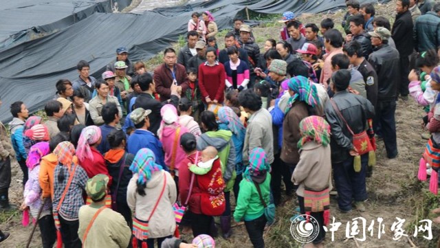 工作隊聘請農(nóng)科站技術(shù)員為村民講解種植技術(shù)現(xiàn)場。