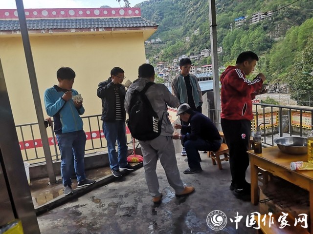 工作隊員們平時大多是這樣站著吃飯。放下碗,立馬奔赴脫貧攻堅戰(zhàn)場。