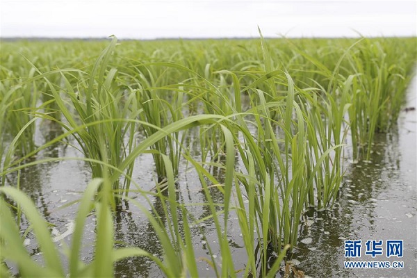 北大荒農(nóng)墾集團有限公司建三江分公司(管理局)七星農(nóng)場長勢良好的稻田(6月15日攝)。新華社發(fā)(張濤 攝)