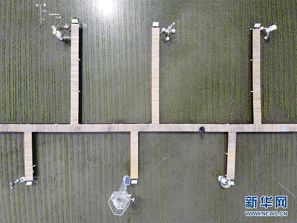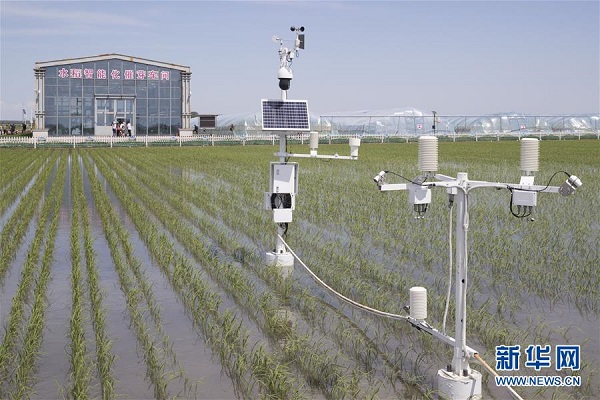 北大荒建三江國家農(nóng)業(yè)科技園區(qū)里的監(jiān)測設(shè)備(6月15日攝)。新華社發(fā)(張濤 攝)
