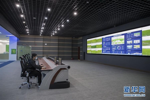 工作人員在北大荒精準(zhǔn)農(nóng)業(yè)農(nóng)機中心的農(nóng)業(yè)物聯(lián)網(wǎng)綜合服務(wù)信息化平臺上進行操作(6月15日攝)。新華社發(fā)(張濤 攝)