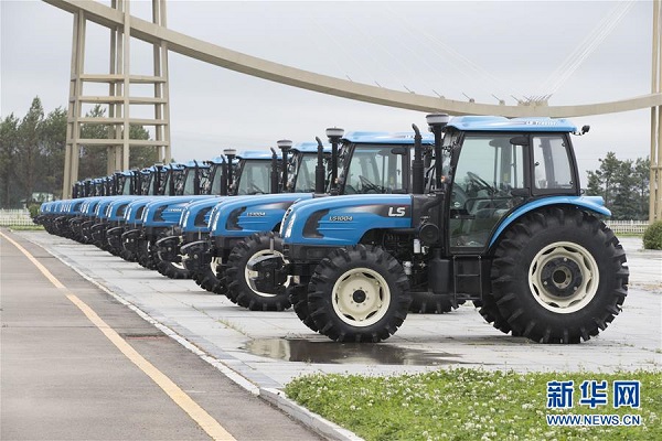 在北大荒精準(zhǔn)農(nóng)業(yè)農(nóng)機中心廣場上展示的大型農(nóng)機(6月15日攝)。新華社發(fā)(張濤 攝)