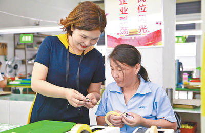 35歲的李輝英來自東河村,兩個娃娃上小學。每天傍晚,她準點下班,趕回家做晚飯,“工資靠計件,每月能賺3000元。家門口上班,顧家、掙錢兩不耽誤!”