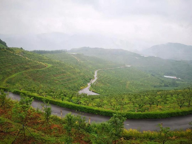 “我們現(xiàn)在看到的是大梨樹村的萬畝花果山,這里栽植著桃、梨、李子、蘋果、杏等100多萬株果樹,葡萄城里還栽植了葡萄、大櫻桃、藍(lán)莓。每年4、5月間,百萬株果花競相開放,可以在山間盡情拍照,到了秋季,就可以來采摘應(yīng)季水果?!彪S車的導(dǎo)游向我們介紹著這片占地2.6萬畝、全國最大的村集體果園,她將我們的行程稱為“重走老書記的創(chuàng)業(yè)路”。