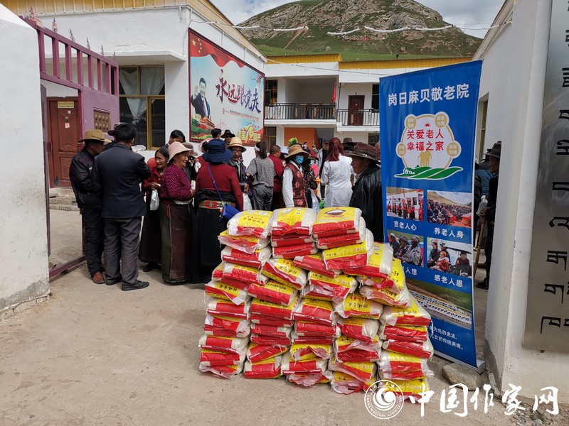 山東省作家團(tuán)與第970醫(yī)院援青醫(yī)療隊(duì)在崗日麻貝敬老院進(jìn)行巡診和捐贈(zèng)糧食