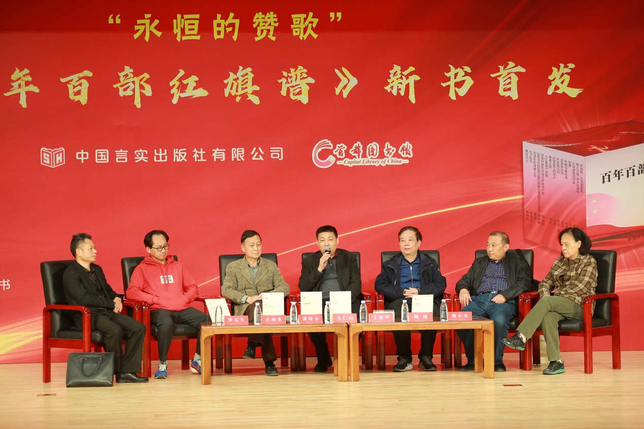 4月10日,首都圖書館與中國言實出版社聯(lián)合主辦“永恒的贊歌——‘百年百部紅旗譜’中的共產(chǎn)黨人”系列講座的首場活動暨《百年百部紅旗譜》新書分享會。中國言實出版社社長、作家王昕朋,作家關(guān)仁山、黃傳會、王宏甲、衣向東、陶純、項小米、羅元生以及首都圖書館副館長陳堅出席活動。