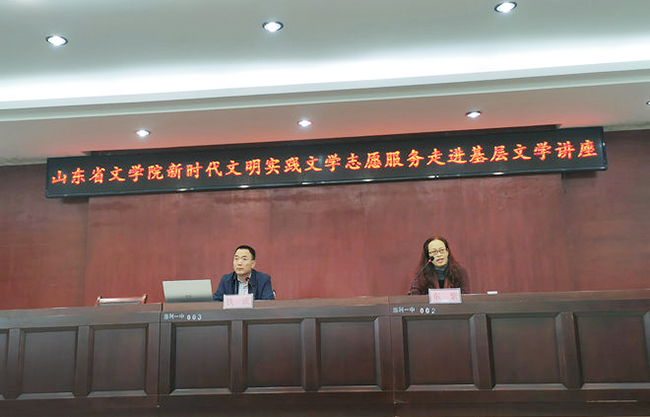 為進一步貫徹落實習近平新時代中國特色社會主義思想,堅持以習近平總書記關于文藝工作的重要論述為指導,深入基層、扎根人民,進一步做好文學普及和服務基層工作,推動新時代文明實踐文學志愿服務活動深入開展,4月20日至22日,山東省文學院赴東營市墾利區(qū)開展新時代文明實踐志愿服務等系列活動。該系列活動一是為基層作家和文學愛好者以及墾利一中的同學們送去了兩場公益文學講座;二是針對新時代文明實踐活動的開展以及山東省文學院下一步的培訓工作進行調研;三是在東營市黨性教育實踐中心開展了主題黨日活動。