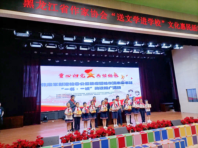 為深入貫徹習近平總書記給烏蘭牧騎隊員們回信的重要指示精神,落實全省文化惠民工程,更好地滿足人民群眾的精神文化需求,黑龍江省作家協(xié)會于6月18日舉辦了“送文學(xué)進學(xué)?!蔽幕菝窕顒印T摶顒邮?021年度中國作協(xié)文學(xué)志愿服務(wù)示范性重點扶持項目之一,旨在推動校園文化建設(shè),幫助青少年樹立文化自信,提高青少年文學(xué)鑒賞水平,發(fā)現(xiàn)培養(yǎng)文學(xué)新苗,為文學(xué)事業(yè)的繁榮發(fā)展積蓄后備力量。