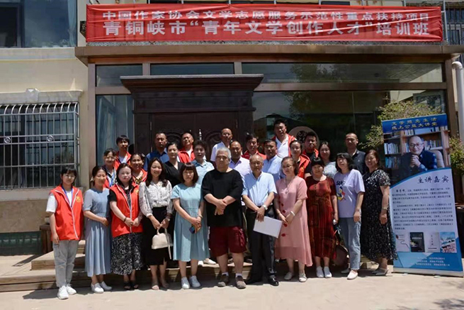 中國(guó)作家協(xié)會(huì)文學(xué)志愿服務(wù)示范性重點(diǎn)扶持項(xiàng)目——青銅峽市“青年文學(xué)創(chuàng)作人才”培訓(xùn)班同期舉辦,由作家之家負(fù)責(zé)人魯興華主持。寧夏作家協(xié)會(huì)副秘書長(zhǎng)張濤致辭。來(lái)自銀川、靈武、青銅峽、吳忠的青年文學(xué)愛好者,線下線上約計(jì)300人參加培訓(xùn)。