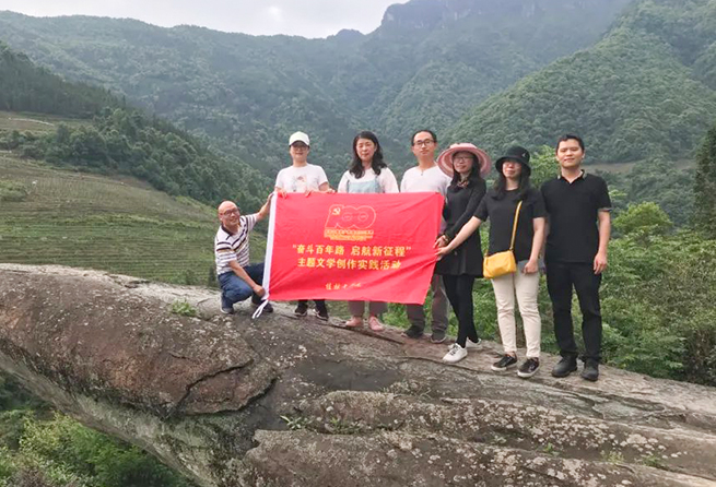 本次活動作家們除了深度采訪,還將黨史學(xué)習(xí)教育與文學(xué)志愿服務(wù)相結(jié)合,將學(xué)黨史、志愿服務(wù)送到少數(shù)民族地區(qū)。在馬海村,作家們走進(jìn)壯族群眾家,跟壯族群眾一起學(xué)黨史,具體地將“講好黨的故事”融入到民族交流中。文學(xué)志愿服務(wù)過程中,大家還虛心向當(dāng)?shù)厝罕妼W(xué)習(xí)古法造紙、雕刻、竹編等傳統(tǒng)工藝,受到美的啟發(fā),小技藝彰顯大境界,體現(xiàn)出了馬海人民千百年來生生不息的動人歷程。