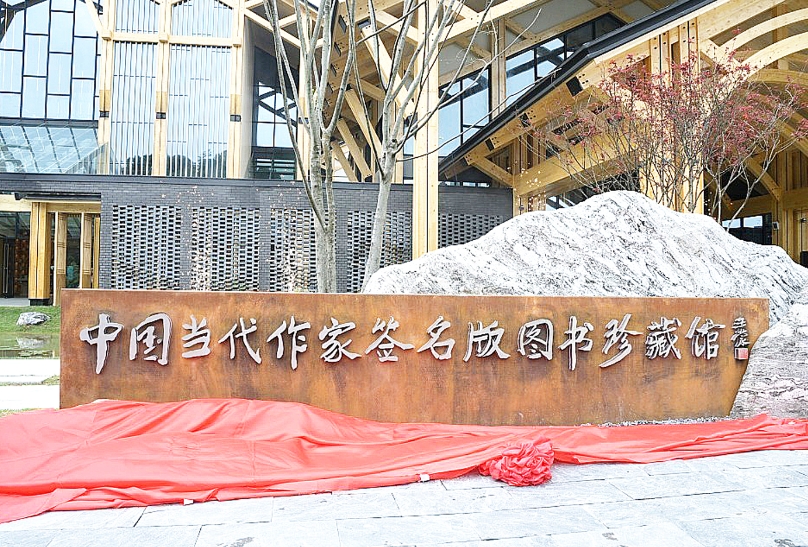落成之際,“人民藝術家”王蒙先生為珍藏館親筆題寫?zhàn)^名,并留下贈言:“做人民的學生,在生活中深造。”珍藏館負責人曹孟良表示,希望把這里打造成一個吸引全國各地文學愛好者來此“朝圣”的“文學圣地”,講解員鄧雨晴則更為感性地把這里稱為“文學的桃花源”。這組造型典雅別致的建筑群,仿如一冊冊厚重的折本書籍,依山傍水,徐徐展開,成詩畫象形之意,造書山文谷之境。目之所及,竹林掩映的室外環(huán)境,通透明亮的玻璃窗脊,原木本色的室內陳設,排序整飭的滿架書籍,讓人流連其間,樂而忘返。