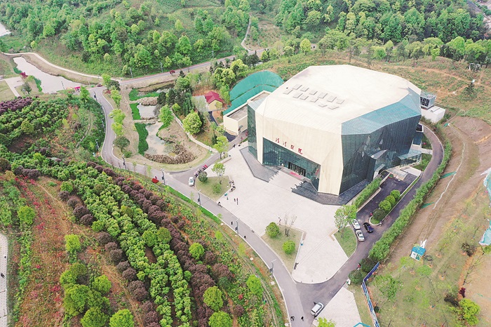 初入清溪村村口,途經水榭舞臺、方言廣場,一幢外立面呈淡褐色、由淡藍色鋼化玻璃組建而成的劇院映入眼簾。于2019年建成、2020年10月正式投入運營的清溪劇院,總建筑面積7161.62平方米,占地面積3000平方米。遠遠望去,以石頭為原型的劇院建筑單體,堅定、穩(wěn)固、頑強地占據清溪景區(qū)一角,給人以“奇特返于平常,至味歸于淡泊”之感。