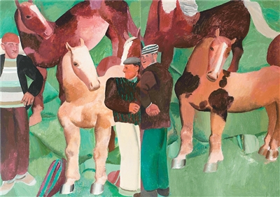 在此以外,來自新疆的藝術(shù)家趙培智,在描繪生養(yǎng)自己土地上的人們時(shí),展現(xiàn)出了更自由舒展的意象。他注重捕捉人們?nèi)粘I畹乃查g,通過提煉和歸納物象造型,形成了濃郁的藝術(shù)語言和情感氣息。諸如在畫作《縱情之馬》中,一種介于現(xiàn)實(shí)與夢(mèng)境間的情緒呼之欲出。其繪畫使表現(xiàn)新疆地域的人物形象不再囿于普通意義上的民族學(xué)范疇,而是展開了更具國際化和現(xiàn)代性視覺張力的新維度。通過趙培智的藝術(shù),可以看到20世紀(jì)以來,從由外及內(nèi)畫新疆,到新疆人自己畫自己的新變。