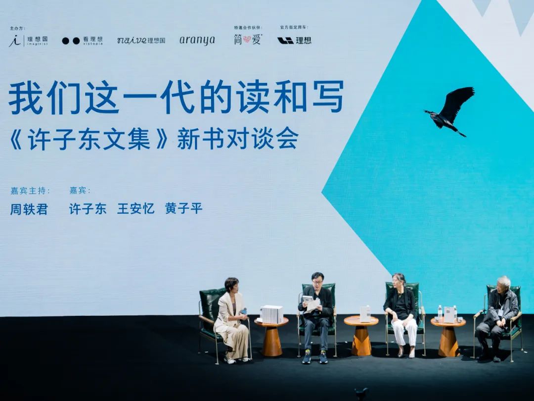 在《許子?xùn)|文集》新書對(duì)談會(huì)上,許子?xùn)|(左二)與王安憶(右二)、黃子平(右一)出席,周軼君擔(dān)任主持人。(圖/理想國 提供)