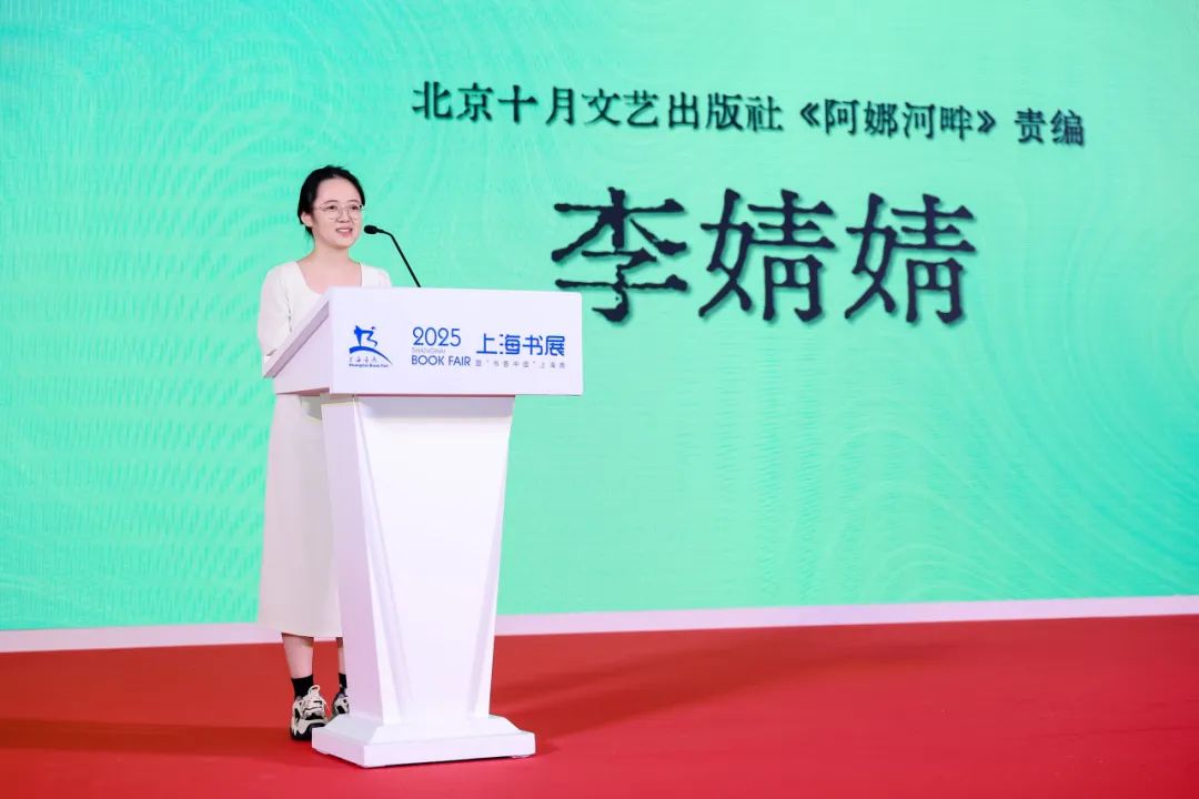 “我有沒(méi)有像前輩編輯一樣的慧眼,在大量稿件中發(fā)現(xiàn)真正的寶藏?面對(duì)資深的寫(xiě)作者,我的意見(jiàn)是否足夠有分量?當(dāng)AI編輯助手出現(xiàn),我怎樣才能不被替代?這些問(wèn)題和困惑,甚至某些時(shí)刻的沮喪,并非軟弱,而是對(duì)這份職業(yè)期許的另一種回聲。我嘗試去尋找答案?!崩铈烘含F(xiàn)場(chǎng)分享了自己責(zé)編阿舍《阿娜河畔》的經(jīng)歷,在小說(shuō)的出版過(guò)程中,她深切感受到了作者對(duì)文字的敬重和對(duì)小說(shuō)傾注的情感與心血,感受到了作者對(duì)新疆、對(duì)兵團(tuán)、對(duì)人民的深情。小說(shuō)獲得的一系列榮譽(yù),在讓她欣喜的同時(shí),更讓她深深敬畏,敬畏文字的力量、編輯的角色,敬畏大家共同托舉的文學(xué)文化事業(yè)?!啊?qǐng)君莫奏前朝曲,聽(tīng)唱新翻楊柳枝?!拜吘庉嬜V寫(xiě)了他們的樂(lè)章,作為青年編輯,我們也要有能力、有自信,寫(xiě)出屬于我們新一代編輯的‘楊柳枝詞’?!?/p>